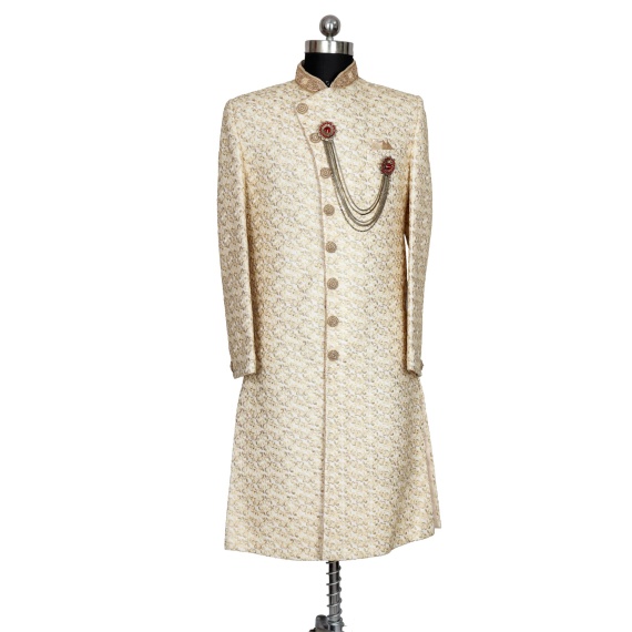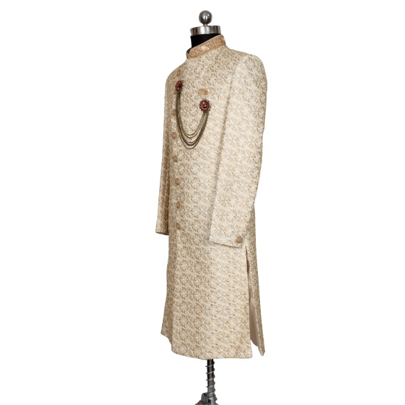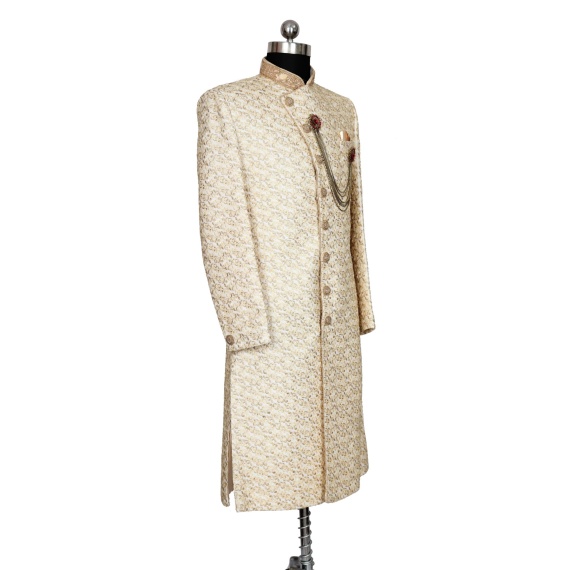 Mens Sherwani on Net based fabric with embroidered collar and buttons. Best in fit and price.