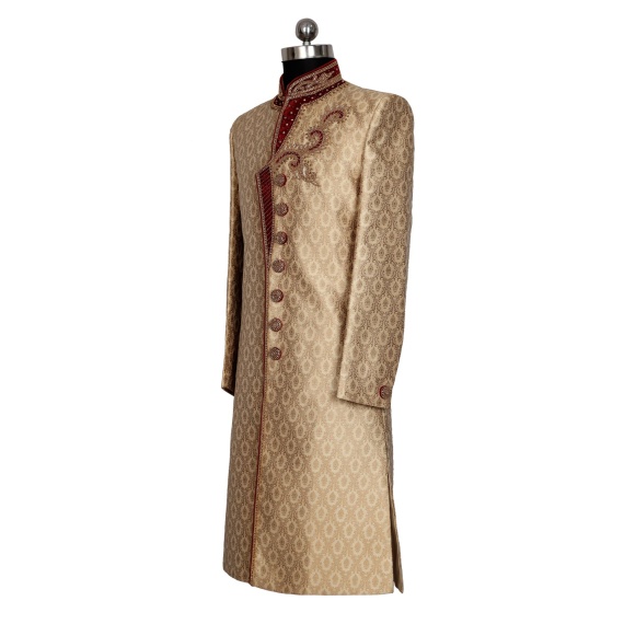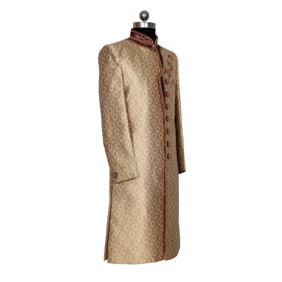 Mens sherwani with velvet patch embroidery