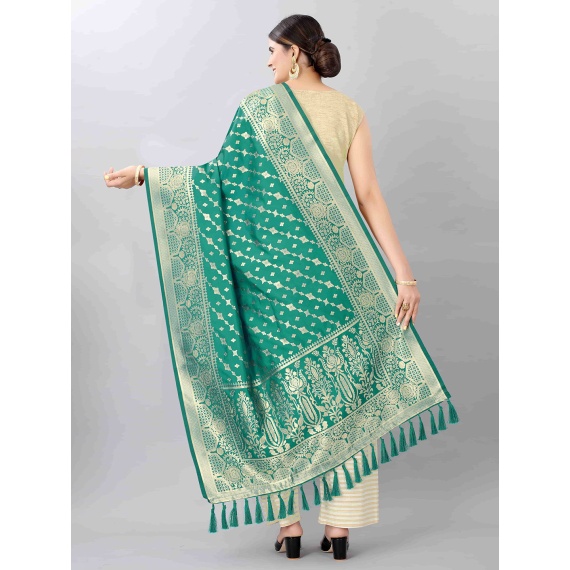 Green and gold-toned ethnic motifs woven design dupatta zari, tasselled border