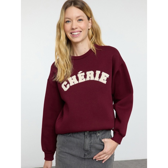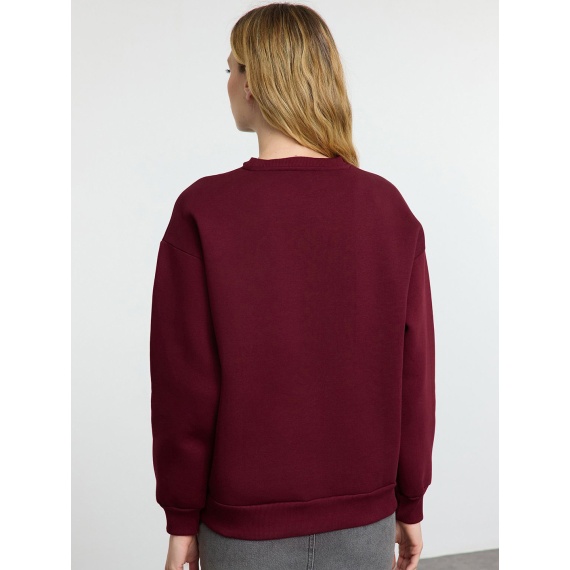 Solid sweatshirt has a round neck, long sleeves, straight hem