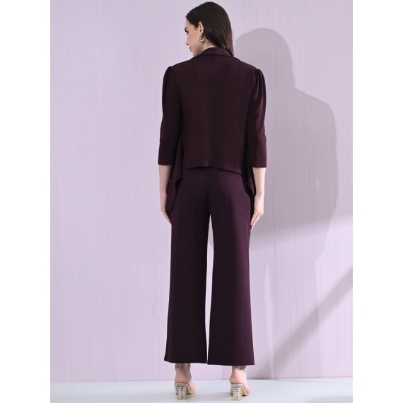 Maroon solid single-breasted regular-fit waistcoat, open-front blazer features a sleek shawl collar