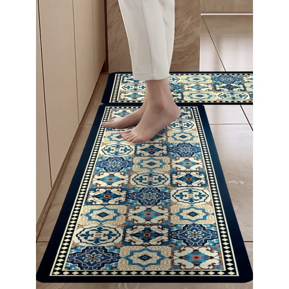 2 Pieces Blue & Beige Floral Printed Water-Proof Runners