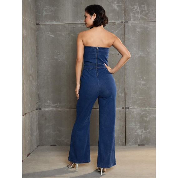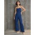 Navy blue solid basic jumpsuit ,has a off-shoulder, sleeveless, 2 pockets