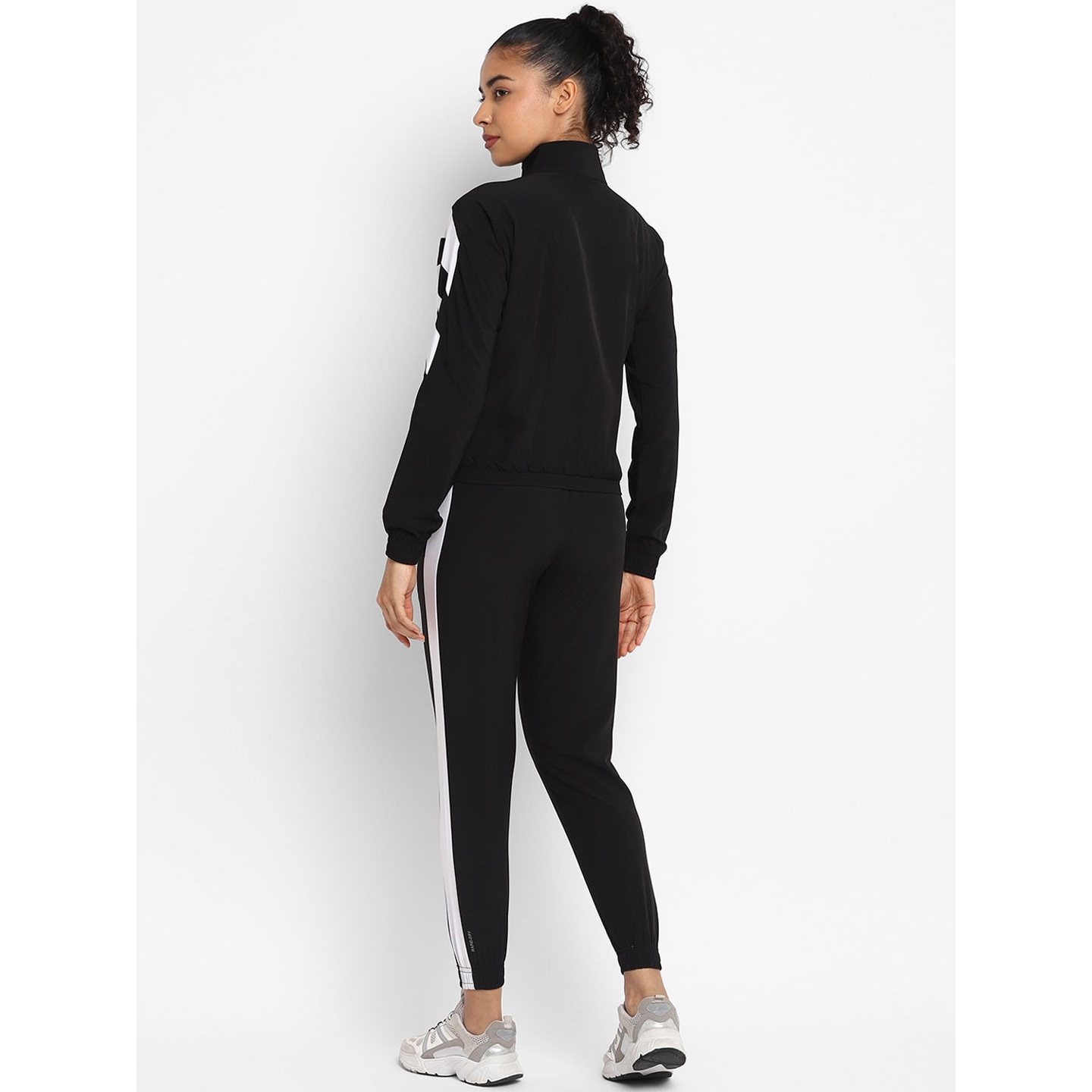 Black & white colourblocked jacket has a stand collar, full zip closure and long sleeves