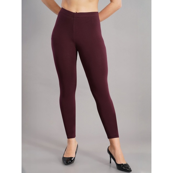 Women Violet Solid Skinny Fit Casual High Ankle Cropped Leggings
