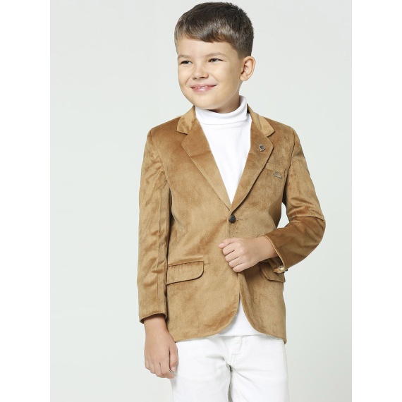 Boys Notched Lapel Collar Comfort Fit Velvet Single Breasted Blazer