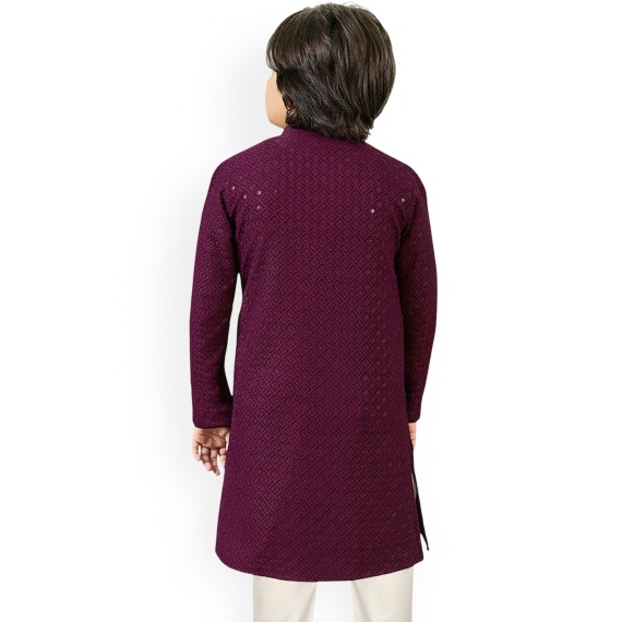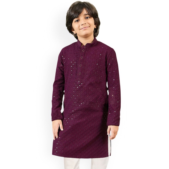 Boys Woven Design Embroidered Sequinned Mandarin Collar Kurta