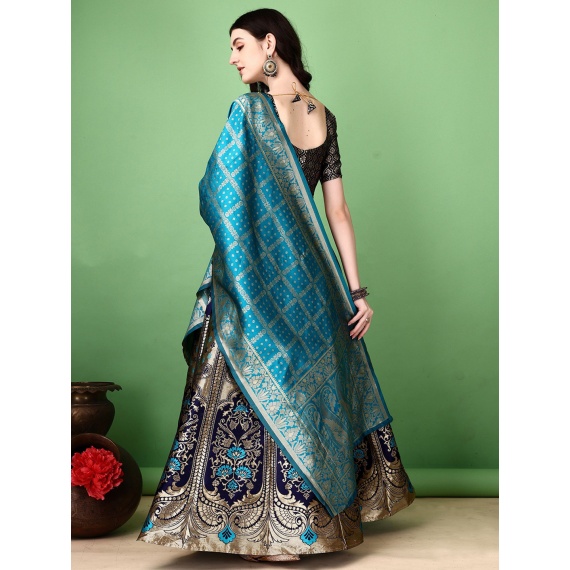 Blue and navy blue, gold-toned woven design lehenga choli with dupatta, zari