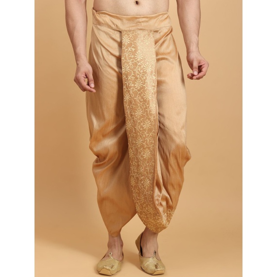 Khaki-coloured embroidered mid-rise dhoti pant with pleats, has a drawstring closure