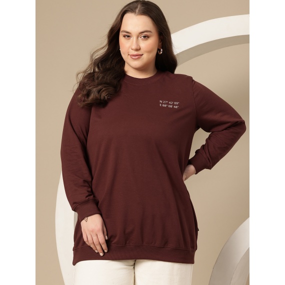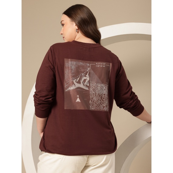 Brown graohic printed sweatshirt has a round neck, long sleeves, ribbed hem