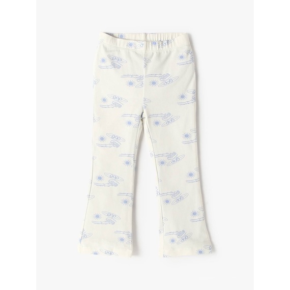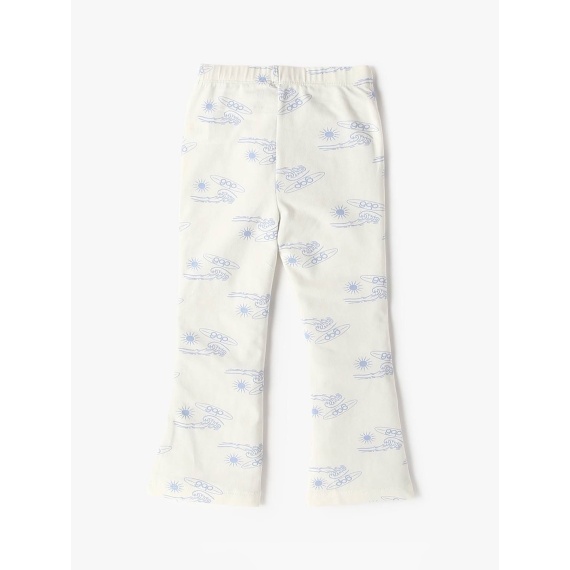 Off white conversational printed regular-fit mid-rise bootcut trousers, has a elasticated waistband with slip-on closure